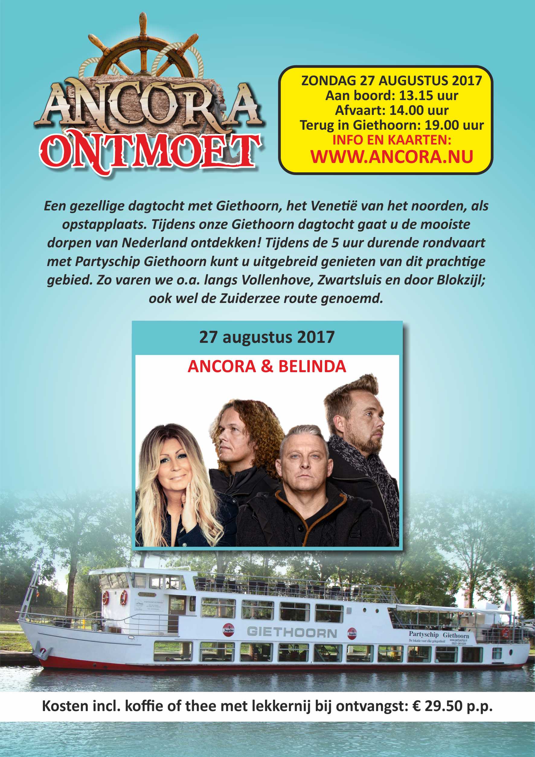 Op zondag 27 augustus is er een EXTRA en tevens laatste afvaart voor Ancora Ontmoet vanuit Giethoorn